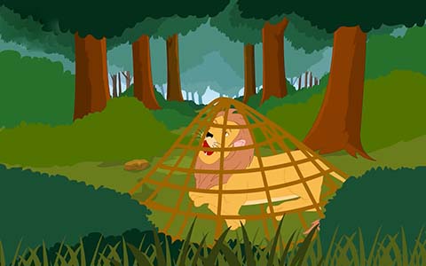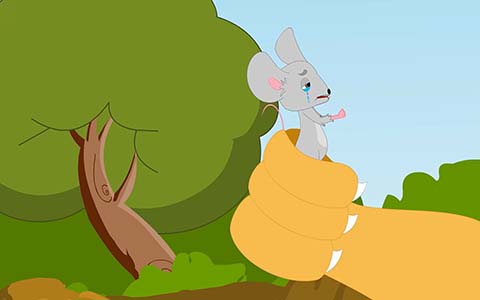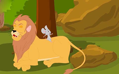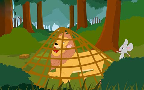 حتى مزقها بالكامل وأخيرا أنقذ الأسد من الفخ ورد له صنيعه ومن ذلك الحين والأسد صديق الفأر